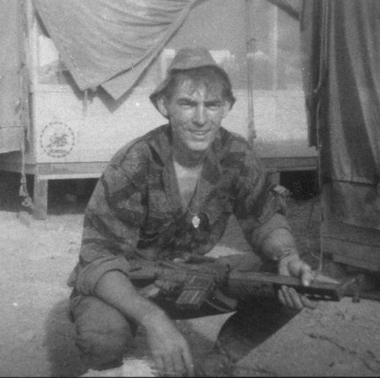 Brown and Roy Olson. The black T-shirts were a trademark of the team. Probably at Phan Thiet. |
